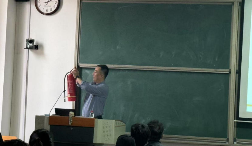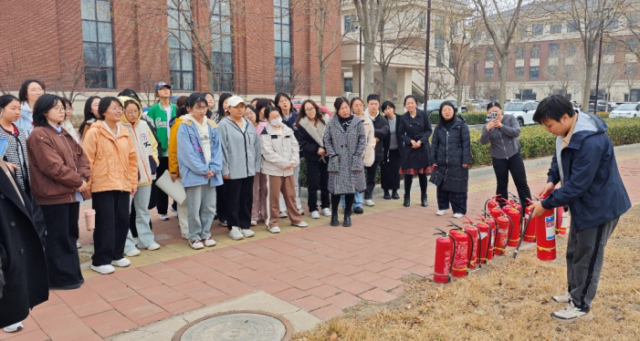 最后,孟老师详细讲解了消防器材的种类及性能、常用灭火方法,演示了灭火器的“提拔握压”操作步骤,鼓励大家进行实操演练。师生们兴致昂扬,积极动手操作,在孟老师的指导下,大家迅速掌握了灭火器的使用方法。