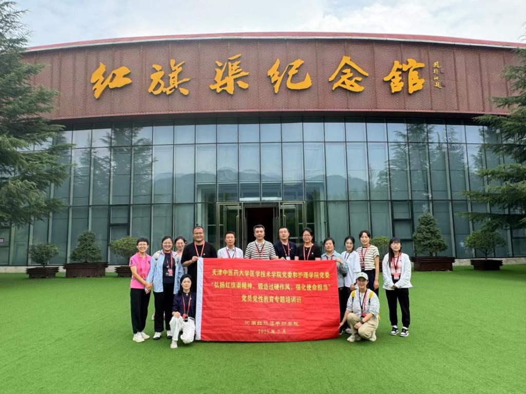 为持续深入贯彻落实习近平总书记视察天津重要讲话精神,践行“四个善作善成”重要要求,开展深入贯彻中央八项规定精神学习教育,提升党员党性修养和思想政治素养,筑牢思想根基,锲而不舍贯彻中央八项规定精神,锻造过硬作风,强化使命担当,激励党员勇争先、善作为,凝心聚力干事创业。7月9日至11日,天津中医药大学医学技术学院党委联合护理学院党委组织教师党员赴河南红旗渠开展“弘扬红旗渠精神,锻造过硬作风,强化使命担当”党员党性教育专题培训。医学技术学院党委书记金鑫带队,各学院党员代表共计14人参加培训。